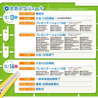 タイムスケジュール、会場案内、参加校紹介などを掲載しています。ぜひご確認ください。
